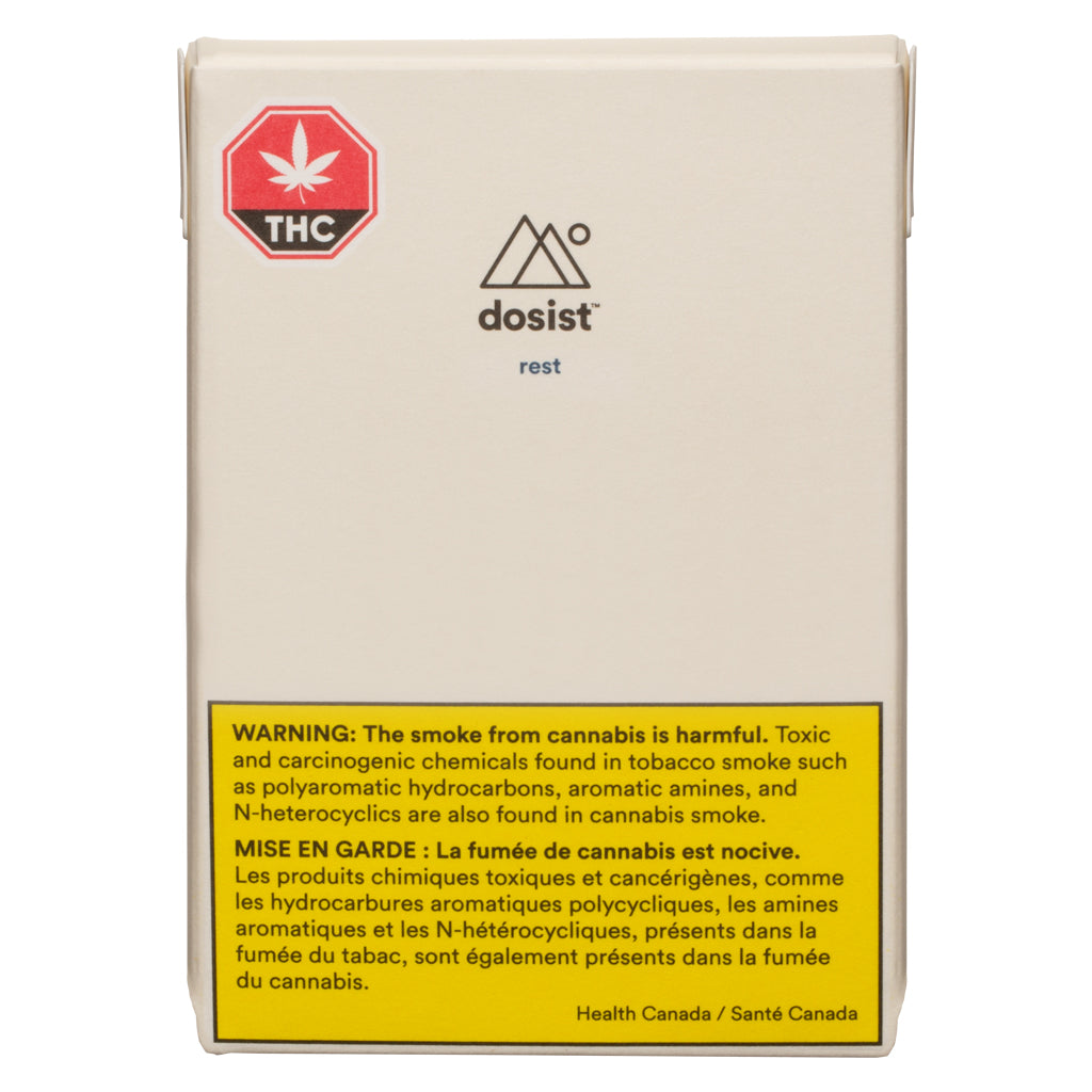 "rest by dosist is a THC focused formula supported by CBD in a ratio of 8:1 THC to CBD to promote rest and relaxation. The formula is supported by a rest promoting terpene blend of Limonene and Nerolidol. The pre-filled dose pod connects to the rechargeable pen to offer 200 doses 2.5mg per dose and provide a precise dose every time. The formula pod is part of the dose pen rechargeable system by dosist that connects exclusively to the dose controller, sold separately. The dose pen rechargeable system by dosist uses superior vaporization elements designed to heat our formulas to a precise temperature and to deliver a dose quickly and accurately. Consistent dosage is provided through three key features: optimized temperature control, airflow control and time control. The dose pen is easy to use. Just inhale at a normal, consistent rate, and the vaporizer will shut off automatically after 3 seconds. A slight vibration will inform you when you've received the precise amount of 2.5 mg