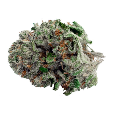 Pink hairs burst from bright green buds barely visible under a blanket of sugar-like trichomes in this hand-trimmed, hang-dried Pink Kush from Flowr. It’s an indica-dominant strain with very strong THC potency and traces of sweet vanilla and candy perfume. Its terpene profile includes myrcene and nerolidol, and it’s available pre-rolled or in 3.5 g and 7 g dried flower sizes.