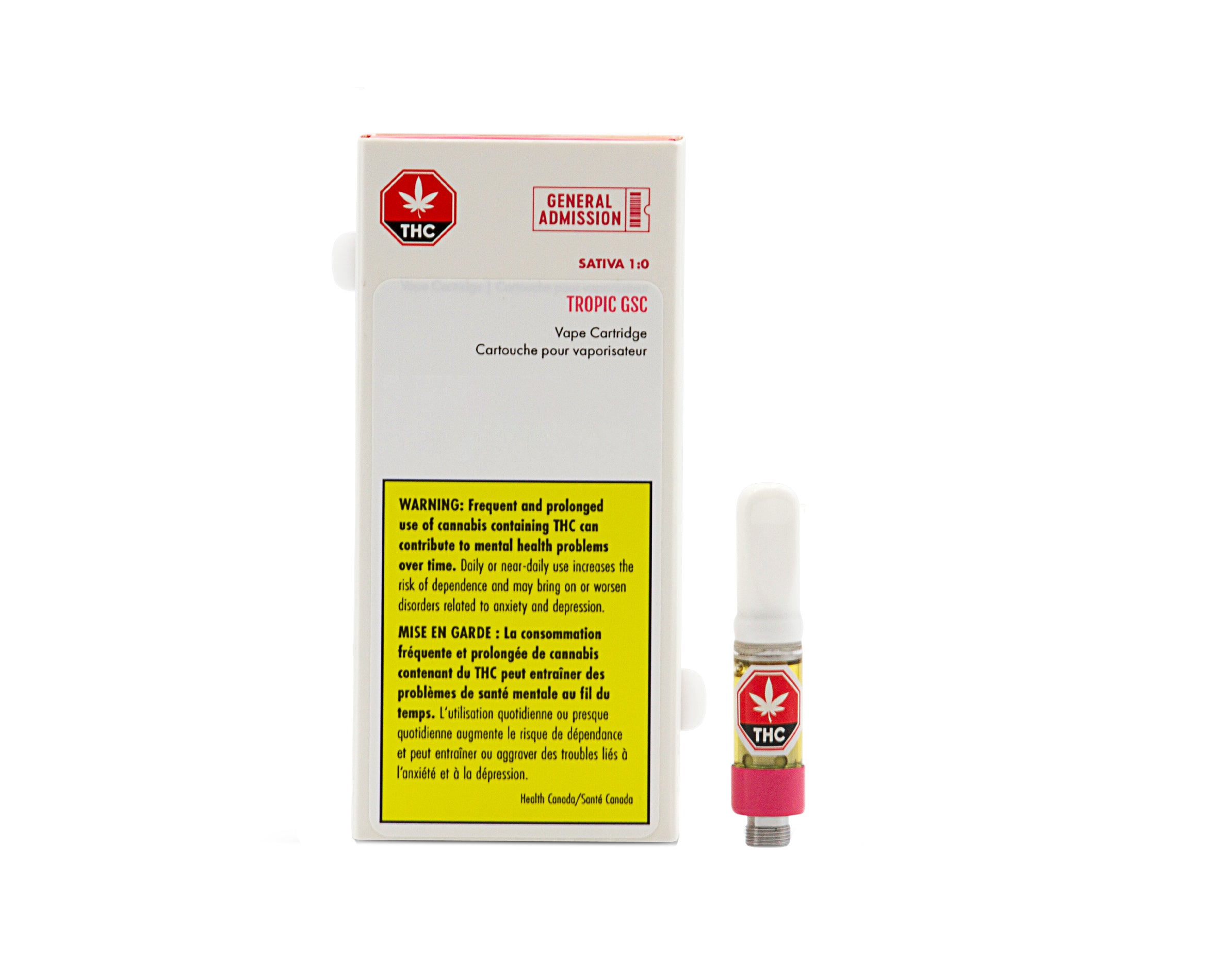 Tropic GSC - all the buzz and afterglow you're looking for in this Tropic Cookies cart. This sativa 1:0 is limonone dominant for the buzz, with caryophyllene, myrcene and linalool to soothe. Made for the masses, General Admission vapes use ethanol extraction to concentrate strains into THC distillates infused with botanical terpenes. With this vape you have everything you need for a great time.