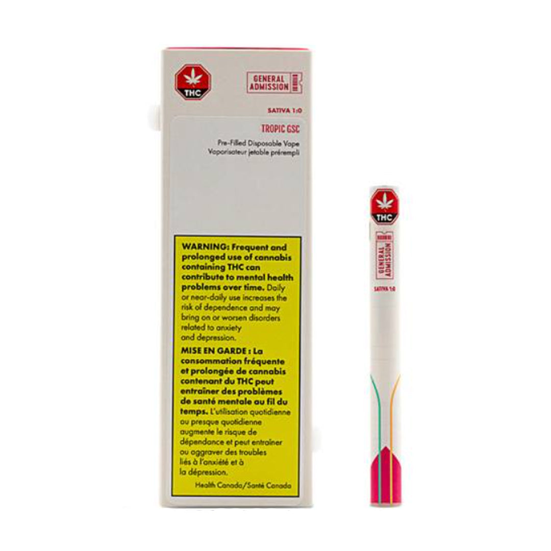 Tropic GSC has all the buzz and afterglow you're looking for in this Tropic Cookies cart. This sativa 1:0 is limonone dominant for the buzz, with caryophyllene, myrcene and linalool to soothe. Made for the masses, General Admission vapes use ethanol extraction to concentrate strains into THC distillates infused with botanical terpenes. With this vape you have everything you need for a great time.