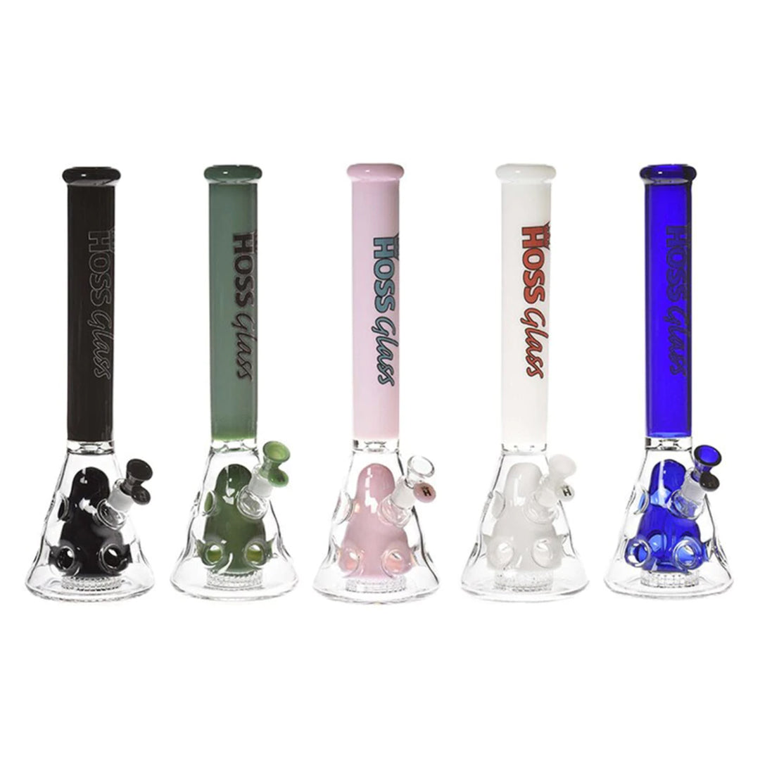 HOSS 18" COLORED NECK & PERC DOUBLE HOLD BEAKER