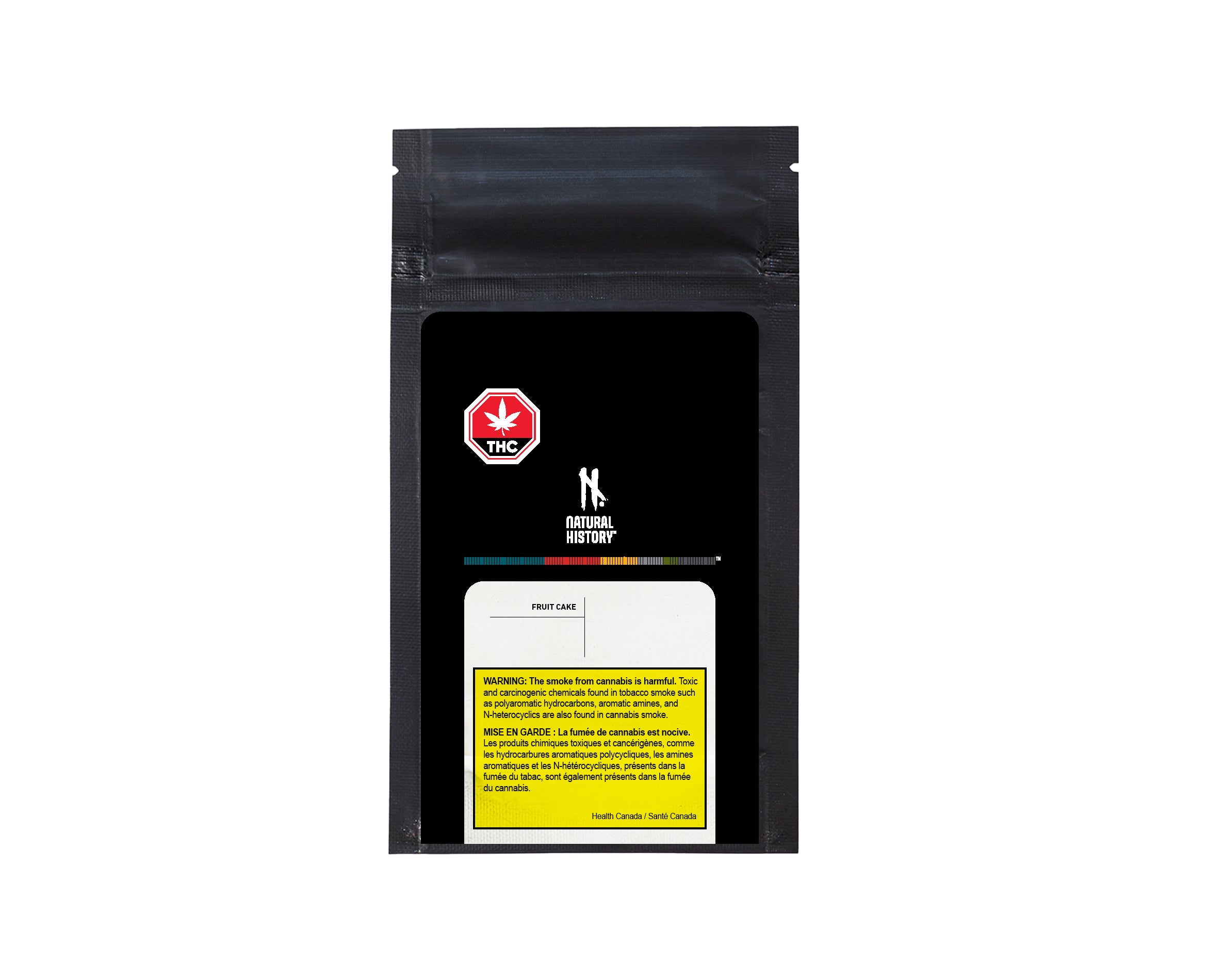 Fruit Cake, from Natural History, is a high-THC cultivar. This hybrid cultivar has a terpene profile of spicy, peppery, and pineapple aromas. Connoisseurs can enjoy the mixture of colours in the Fruit Cake flower, as the dominant colour changes from purple to green as it travels down the plant. Fruit Cake is fully cultivated indoors, in precision-controlled laboratory conditions. All Natural History cannabis is thoughtfully hung to dry, hand trimmed and cured for a minimum of 10 days. Lineage: Cookies & Cream x Plum Wine.