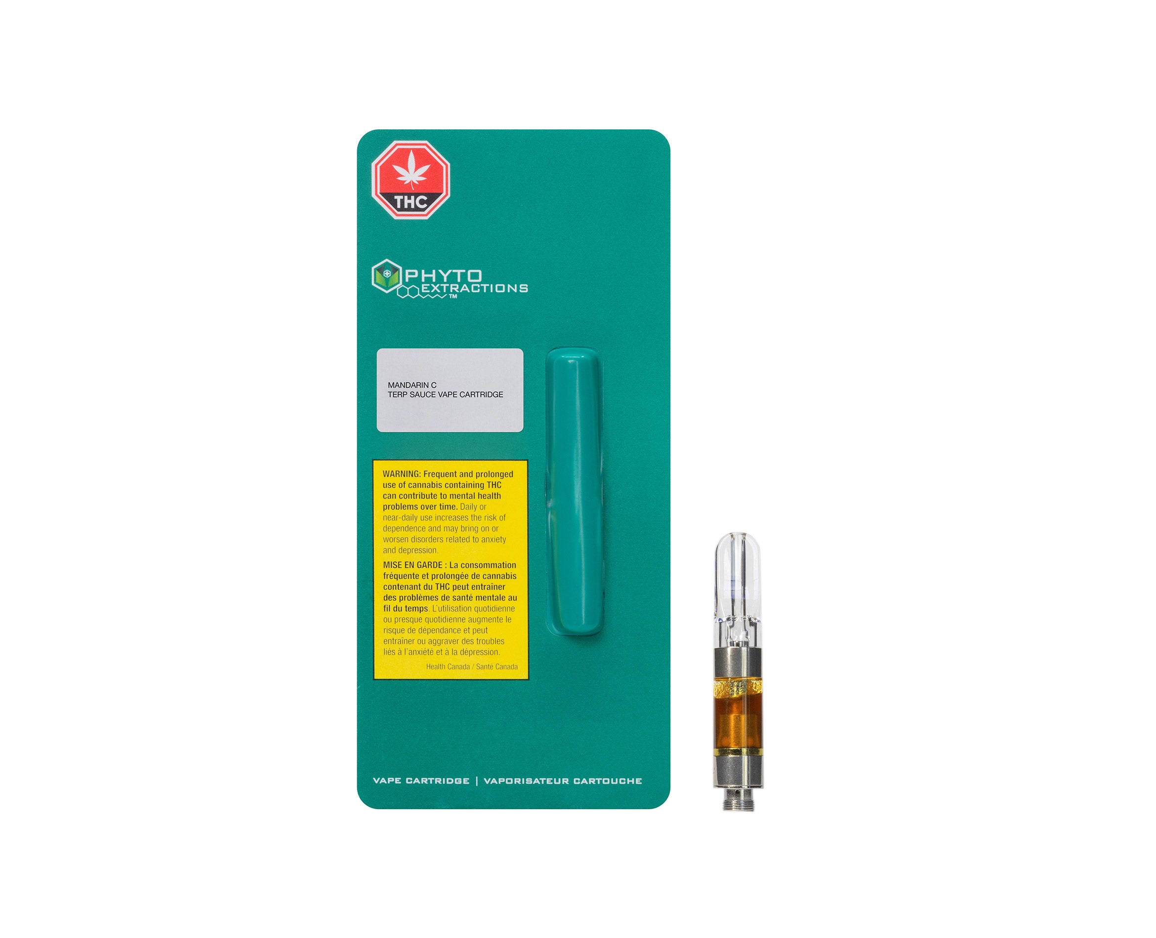 Mandarin Cookies CO2 Terp Sauce (also referred to as HTFSE) is a full spectrum oil cartridge made using CO2 extraction of the Sativa dominant Hybrid strain Manadarin Cookies. The high terpene content comes from a careful subcritical CO2 extraction. The cannabinoids are then extracted using a supercritical CO2 extraction. The high quality terpenes offer a flavour and aroma of smokey spice, citrus and pine. This product is 100% cannabis derived, with no additives or carrier oils. Compatible with 510 thread devices. Device not included.