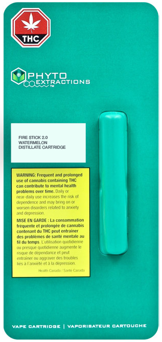 A blend of sweet and earthy terpenes makes this Watermelon cartridge a perfect choice for a warm summer day. The latest in Phyto Extractions' series of vape products: 0.5g cartridges available in six distillates (Watermelon, Orange, Blueberry, Pineapple Express, Pink Kush and Super Lemon Haze). These cartridges offer a THC content of 75 to 85 per cent, made from all-natural terpenes. Use with a standard 510 vape battery to get started. Battery not included.
