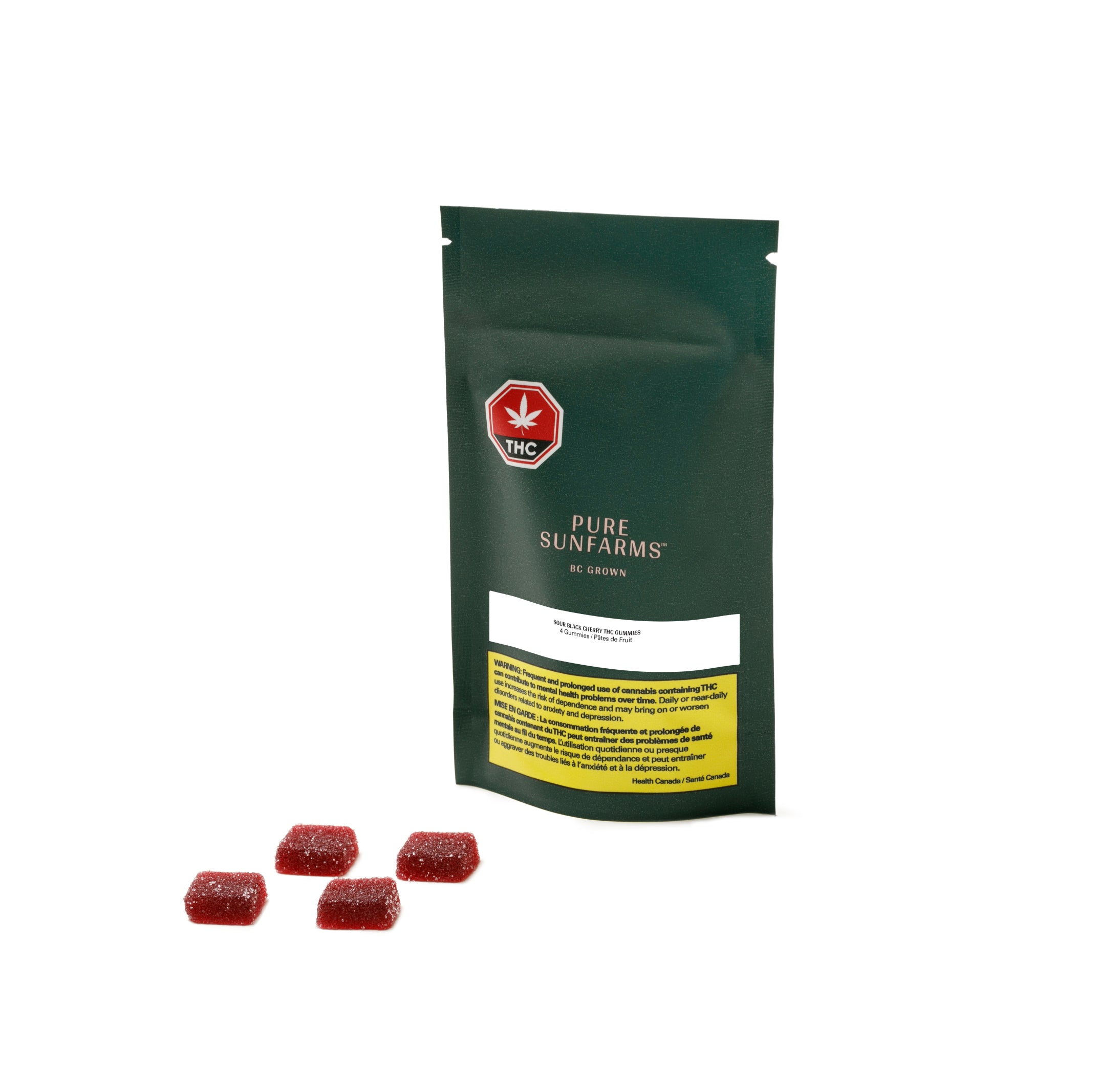 "Pure Sunfarms gummies are made with real fruit, inspired by fruits native to BC, delivering delicious flavour with every bite. Each pectin based gummy is 100 per cent vegan and gluten free, featuring natural flavours and colours. With controlled and consistent portions, each gummy features 2.5mg of THC, tailored for those seeking a spotlight on THC.
