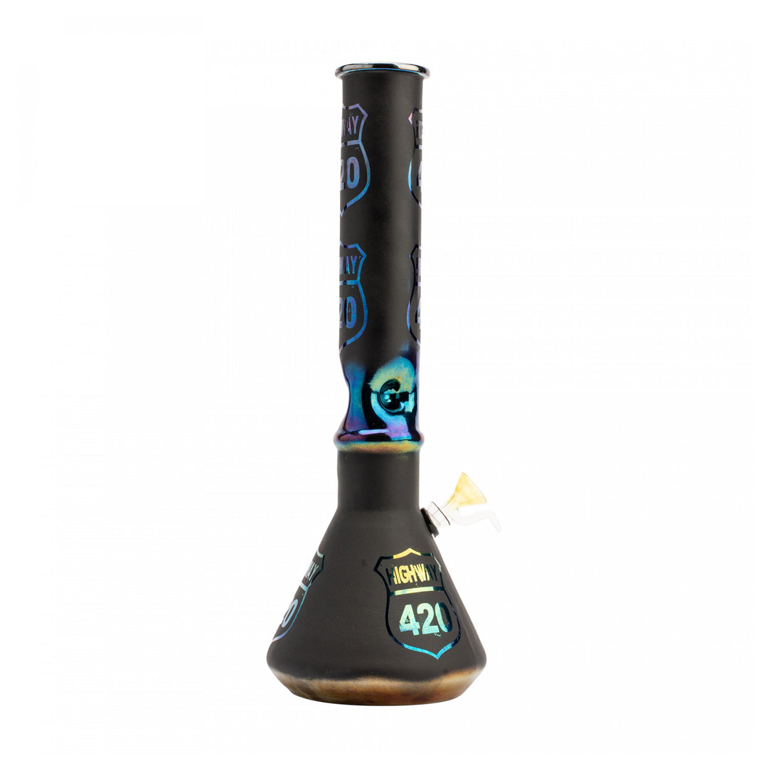 RETRO GLASS BLACK METALLIC HWY 420 BEAKER - 16"