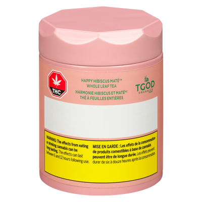 TGOD Organic Happy Hibiscus Mate whole leaf infused tea combines the highest-quality organic teas with a consistent and reliable dose of 2.5 mg of THC and 5 mg of CBD from certified organic cannabis. Vibrant in colour and flavour, this cherry-red brew is brisk and lively thanks to brilliant hibiscus and bitter mate, balanced with sweet cacao, orange peel and bright turmeric. It's a robust, wholesome cup that finishes warmly thanks to earthy ashwagandha and ginger. Responsibly sourced, premium ingredients are packed in a recyclable tin containing four premium biodegradable pyramid sachets. Absorption occurs in just 15 minutes with 4.5 times the absorption versus cannabis oil.