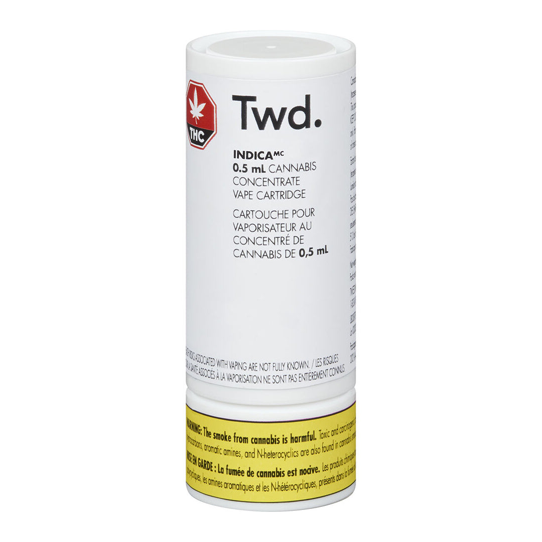 This 510-threaded vape cartridge features Twd. IndicaTM cannabis. It is compatible with many 510-threaded batteries and is incredibly easy to use; just screw it in and inhale to start. Each cartridge contains 415mg of THC. Compatible with 510 Thread batteries only. Device not included.