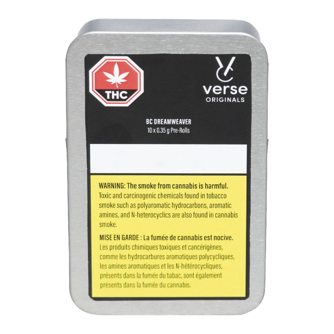 Versus BC Dreamweaver is an indica-dominant strain with a flawless grind and pack for a steady burn. Each pack contains 10x0.35g pre-rolls using unbleached, natural brown paper and includes a humidity pack to help maintain freshness.