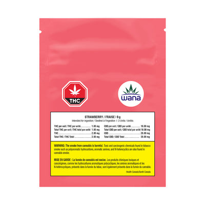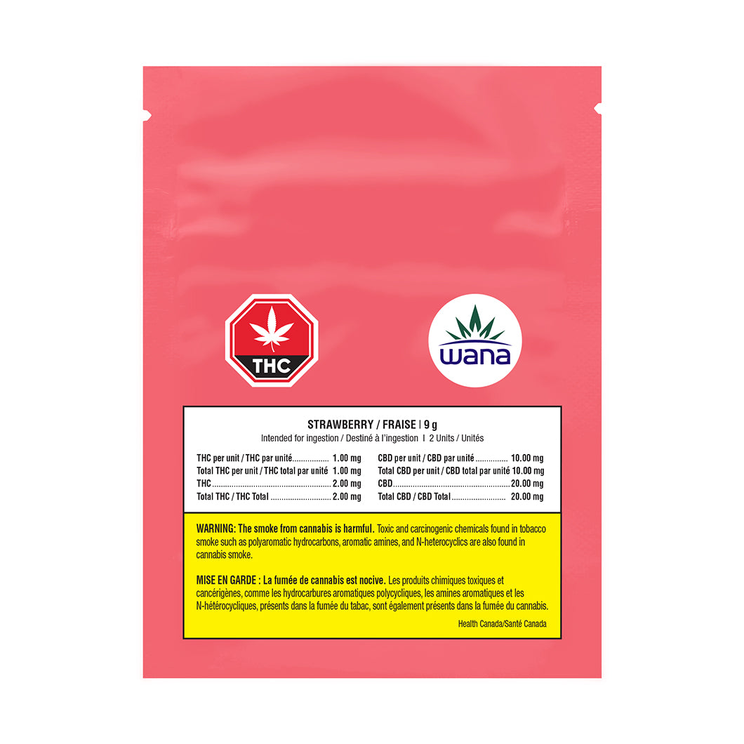 Strawberry 10:1 Wana Sour Gummies boast juicy fruity flavour throughout. Handcrafted with vegan and gluten-free ingredients, each gummie is infused with 10 mg CBD and 1 mg THC terpene-enhanced distillate to create a 10:1 CBD/THC ratio.